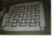 I've given myself permission to take breaks from work and sew. As I explained to my [amazing] boss, I'm being paid for one-quarter of a full-time job, so I'm going to put in no more than 10 hours a week and reclaim my life. That has allowed me to complete my sister's quilt (a birthday surprise, but she doesn't read my blog, so I feel safe!) and get it ready to ship out to the quilter next week. I've decluttered one desk drawer. (Somebody tell me why my husband felt it was necessary to hang on to the duplicate checks from the 90's?)